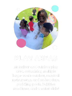 An indoor and outdoor play area, containing multiple large-scale outdoor, musical instruments, and on hot days, paddling pools, bubbles machines, and a water slide!